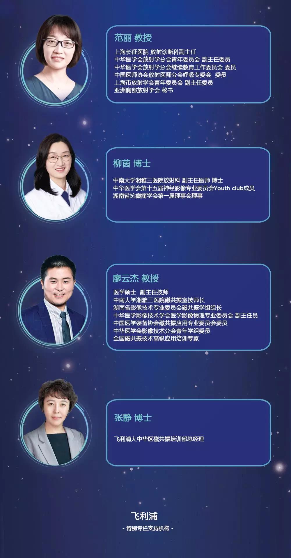 近年来磁共振技术发展迅猛,飞利浦公司在磁共振领域持续创新,不断推出新的磁共振成像设备和技术,这些软硬件技术在全身各个系统包括神经系统的应用可以说是日新月异。本次学术活动我们邀请到了湘雅三院的柳茵教授、廖云杰教授以及飞利浦磁共振临床应用培训部经理张静博士从不同角度介绍磁共振技术在神经系统的应用,同时,为了帮助大家在科研思路方面有更多的启发,特别邀请了上海长征医院范丽教授基于临床问题进行科研思路拓展的相关内容讲解,希望能助力大家的临床诊疗和科研工作。