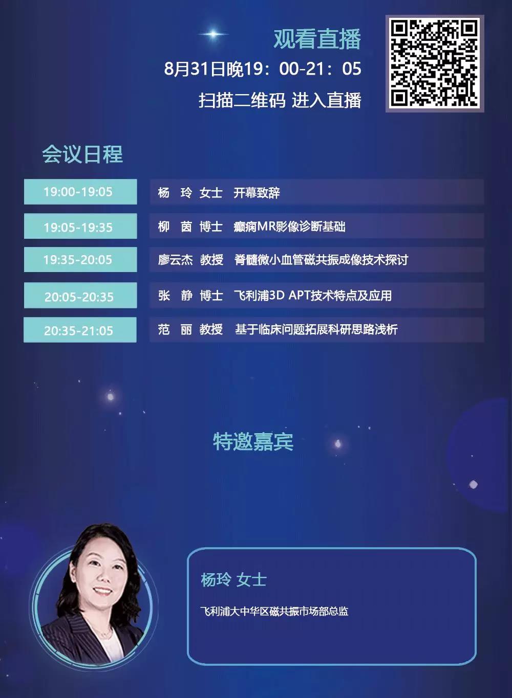 2021年8月31号晚上7点,飞利浦磁共振临床科研应用学术研讨会将在云端与您见面,敬请期待!